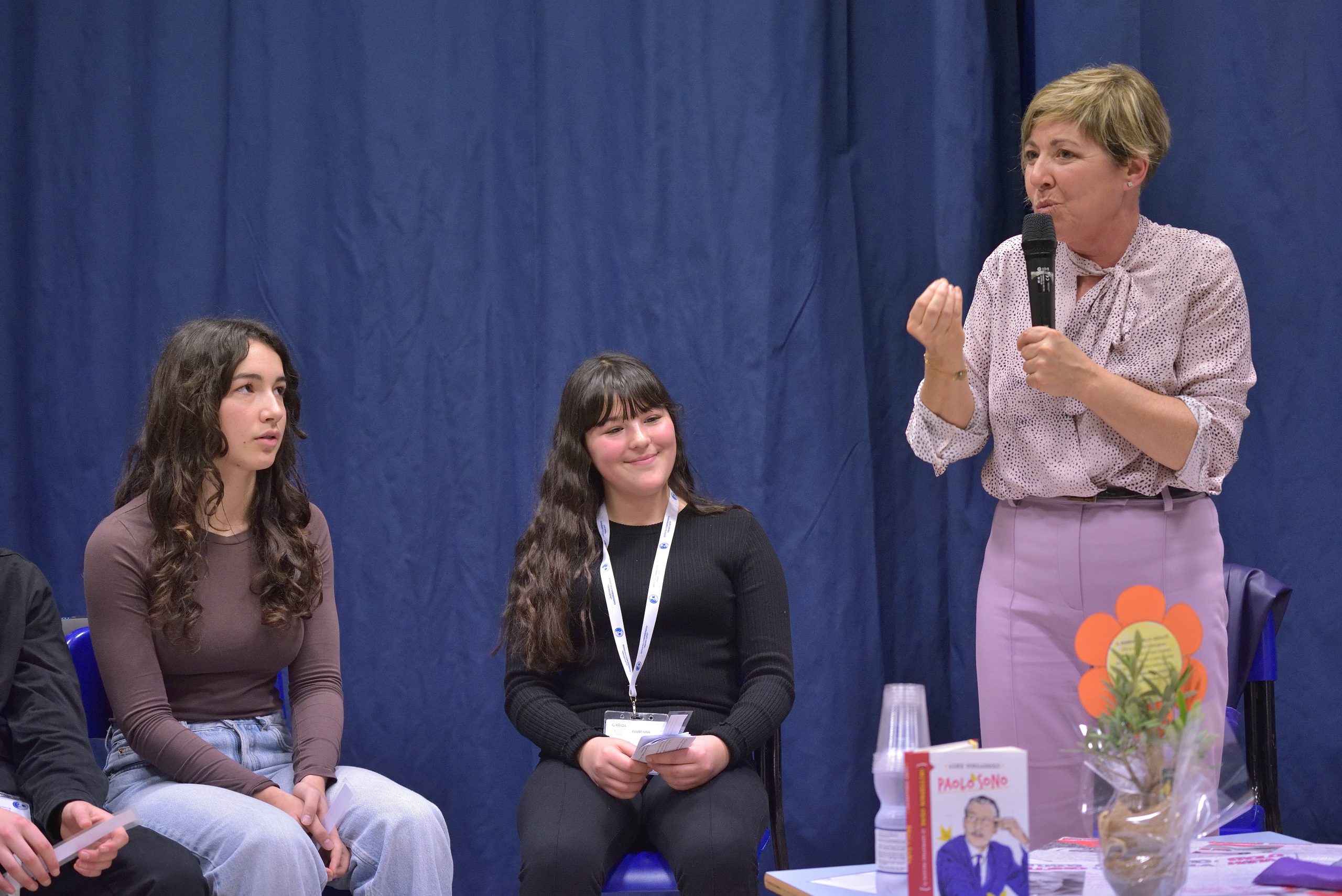 Fiammetta Borsellino ha portato la sua testimonianza e raccontato ai ragazzi la figura del padre, per onorarne l’impegno e la memoria anche in ricordo di tutte le vittime innocenti delle mafie.